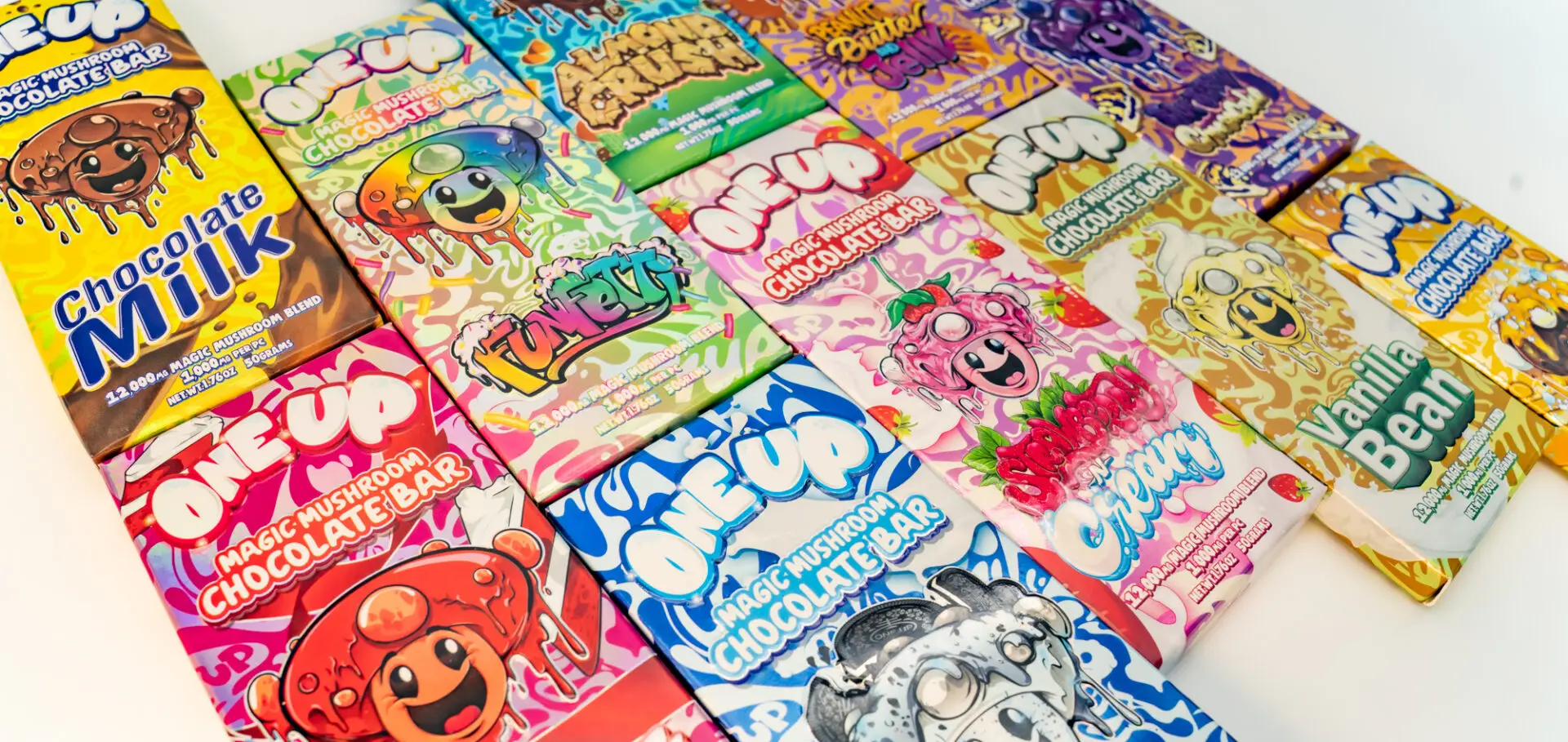 STEP INTO THE WHIMSICAL WORLD OF ONE UP, WHERE CHOCOLATE ISN’T JUST CHOCOLATE, AND MUSHROOMS ARE MORE THAN JUST TOPPINGS ON YOUR PIZZA. WE’RE NOT YOUR AVERAGE COCOA CRAFTERS: WE’RE THE WILLY WONKAS OF THE MUSHROOM EDIBLES INDUSTRY, MINUS THE OOMPA LOOMPAS BUT WITH ALL THE MAGIC. SINCE OUR INCEPTION, WE’VE BEEN ON A MISSION TO TAKE YOU ON A DELECTABLE JOURNEY, BLENDING THE FINEST COCOA WITH THE MYSTICAL POWER OF MUSHROOMS TO CREATE A CHOCOLATE EXPERIENCE THAT’S OUT OF THIS WORLD. AND GUESS WHAT? WE DID IT, BECOMING PIONEERS IN THE MUSHROOM EDIBLES SPACE AND EARNING OUR STRIPES (OR SHOULD WE SAY SPOTS?) WITH SOME OF THE BEST-SELLING AND HIGHEST-RATED EDIBLES ACROSS THE UNITED STATES.